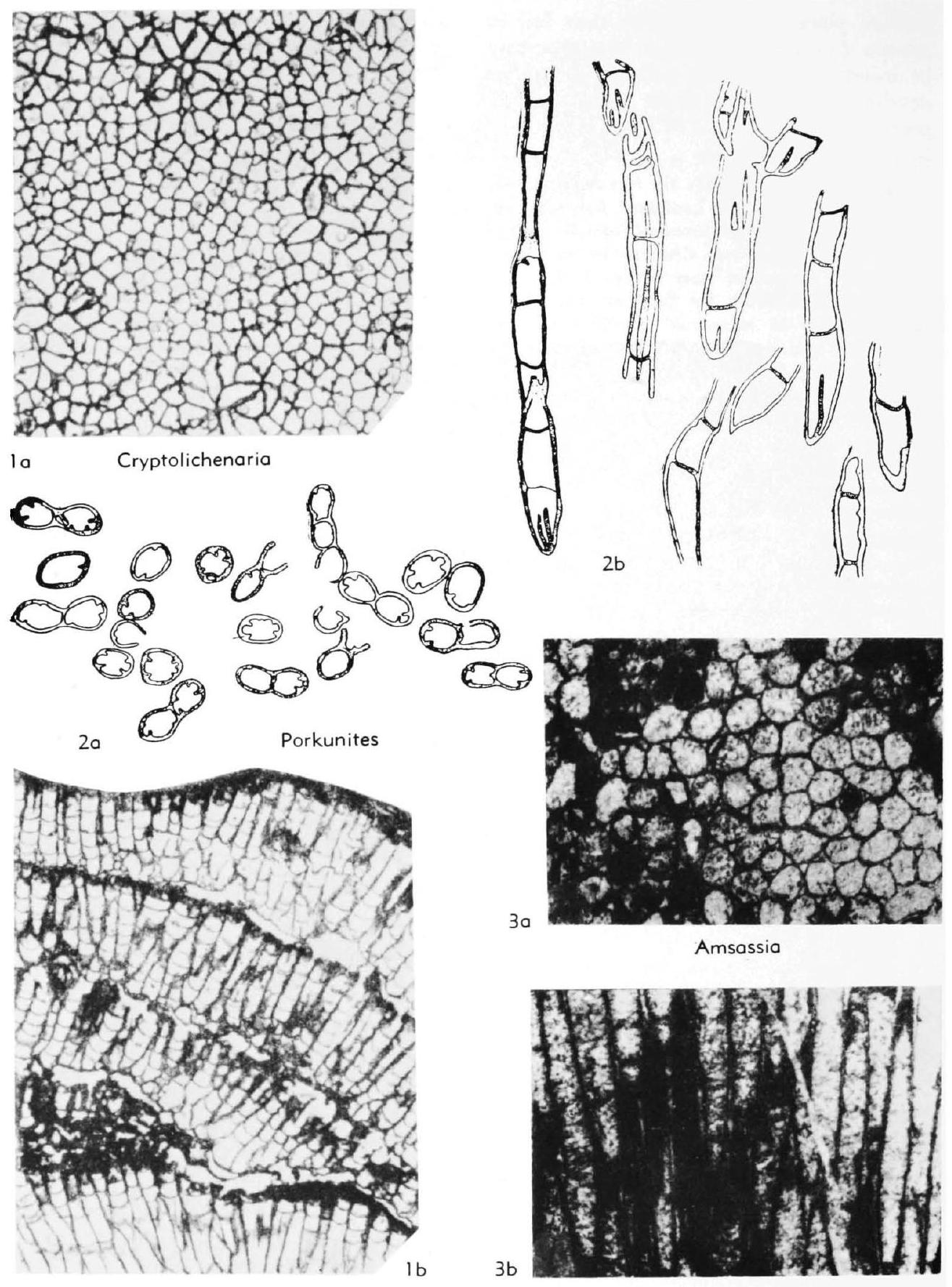 Fig. 334,3a,b. *A. radugini Mironova, holotype, low. U.Ord.(Amsass Suite), W.Sib., Shoria Mts., a, b, transv., long. secs., X4 (Sokolov& Mironova, 1959).