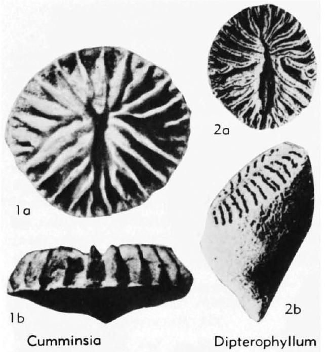 Fig. 209,1a,b. *C. aplata (Cummins), Smithwick Sh., Texas, San Saba Co., a, b, calical, side views, X2 (Moore& Jeffords, 1945)."