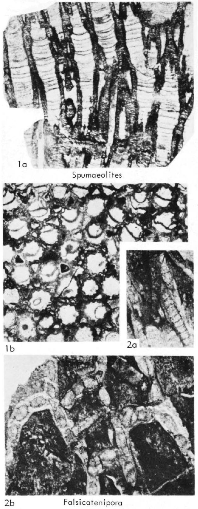 Fig. 431,2a,b. *F. japonica (Sugiyama), U.Sil.(low.Ludlov.), Japan, Higutizawa in Kawauti, Kitakami Mts., a,b, long., transv. secs., X2.7 (Sugiyama, 1940).