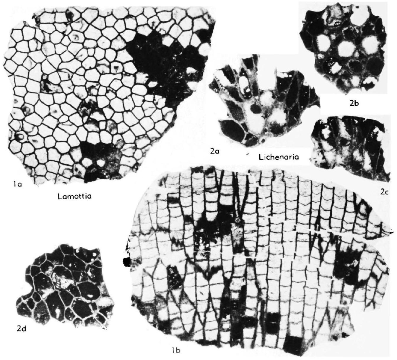 Fig. 337,2a-d. *L. typa, syntypes, Decorah F.; a,c, oblique sees.; b,d, transv. sees. showing mural pores, X4 (Hill, n; USNM no. 42949). [Research on type material and topotypes required; the "cotypes" figured herein are probably Paleofavosites TWENHOFEL, 1914, p. 24.]