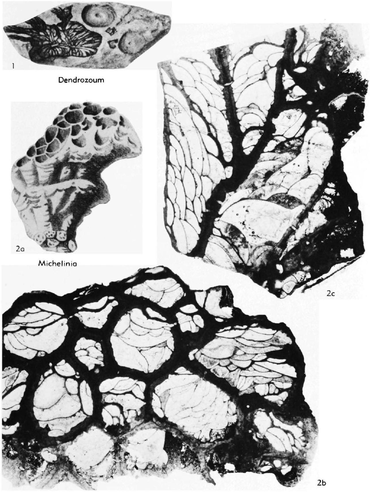 Fig. 374,2a-c. *M. tenuiseptata (PHILLIPS); a, ext. view, X1 (Phillips, 1836); b,c, lectotype, Yorkshire, Bolland, transv., long. sees., X4 (Hill, n; photographs courtesy H. D. Thomas).