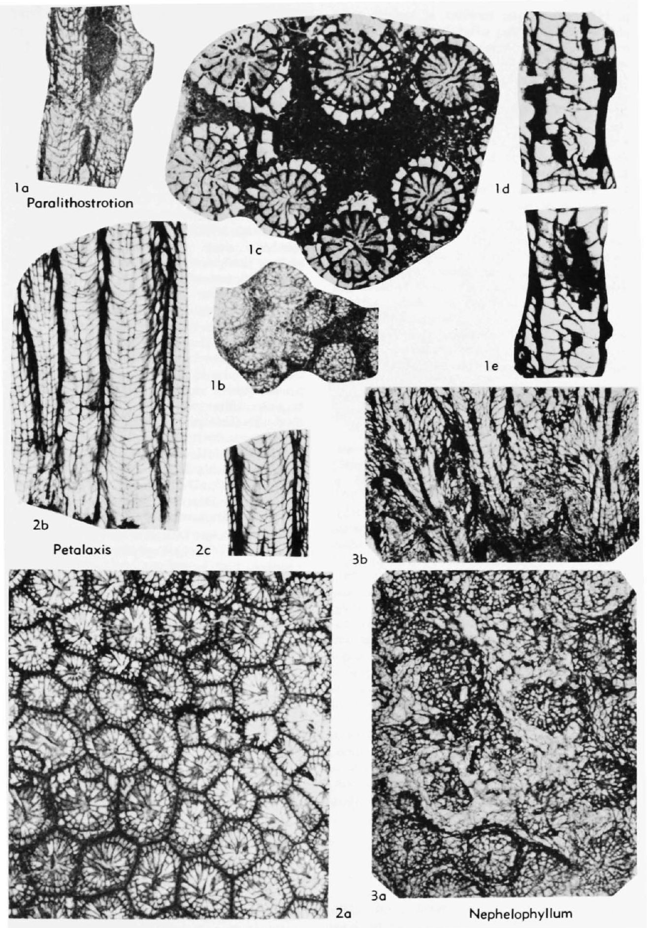 Cerioid or in part aphroid, common wall when present a narrow peripheral stereozone of contiguous septal bases, axial column narrow, simple median plate with few short radial lamellae and conical tabellae, pericolumnar tabulae subhorizontal or sagging, with clinotabulae peripherally, marginarium mainly lonsdaleoid dissepimentarium except in early stages of offsets, where septa longitudinally contiguous and thickened