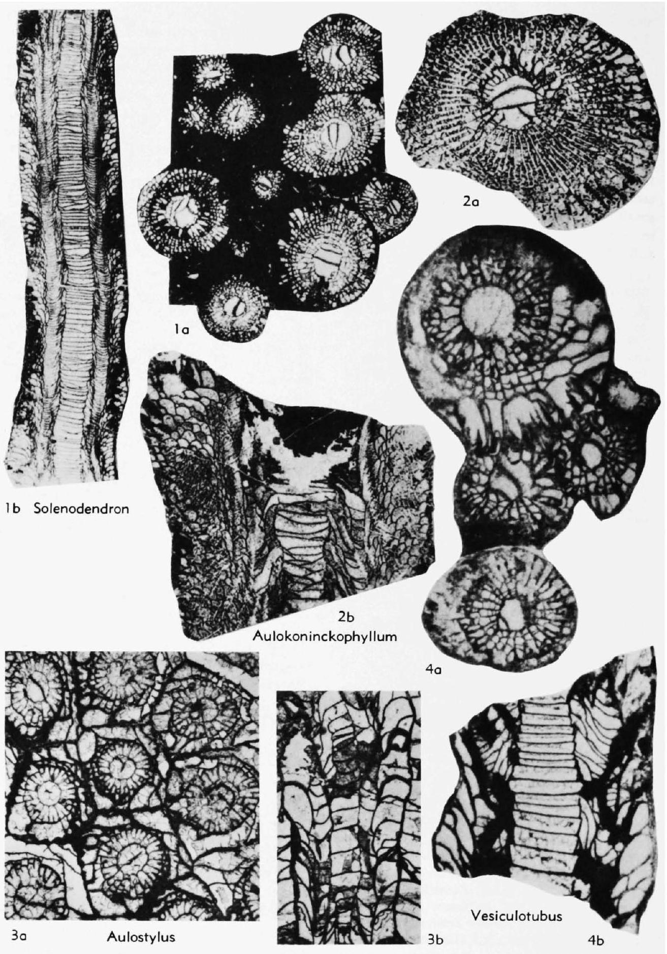 Fig. 253,1a,b. *S. horsfieldi (Smith& Yü), paratypes, L.Carb.(up. Tournais.),mathrm{C}_{1}, Hawbank Ls., U.K., near Bell Busk, Yorkshire, a, b, transv., long. secs., X2 (Smith& Yü, 1943).